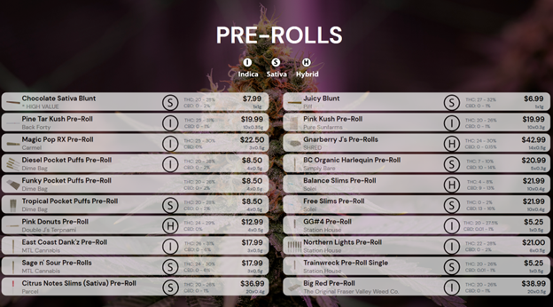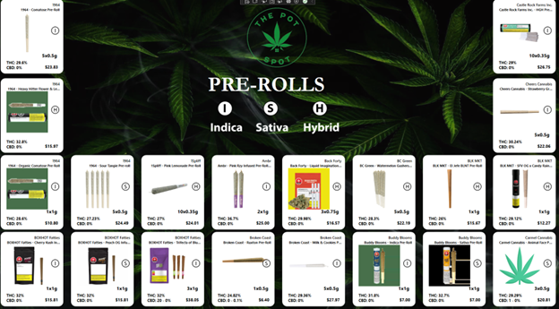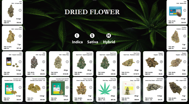 • Show your cannabis menu on screen where customers make decisions.